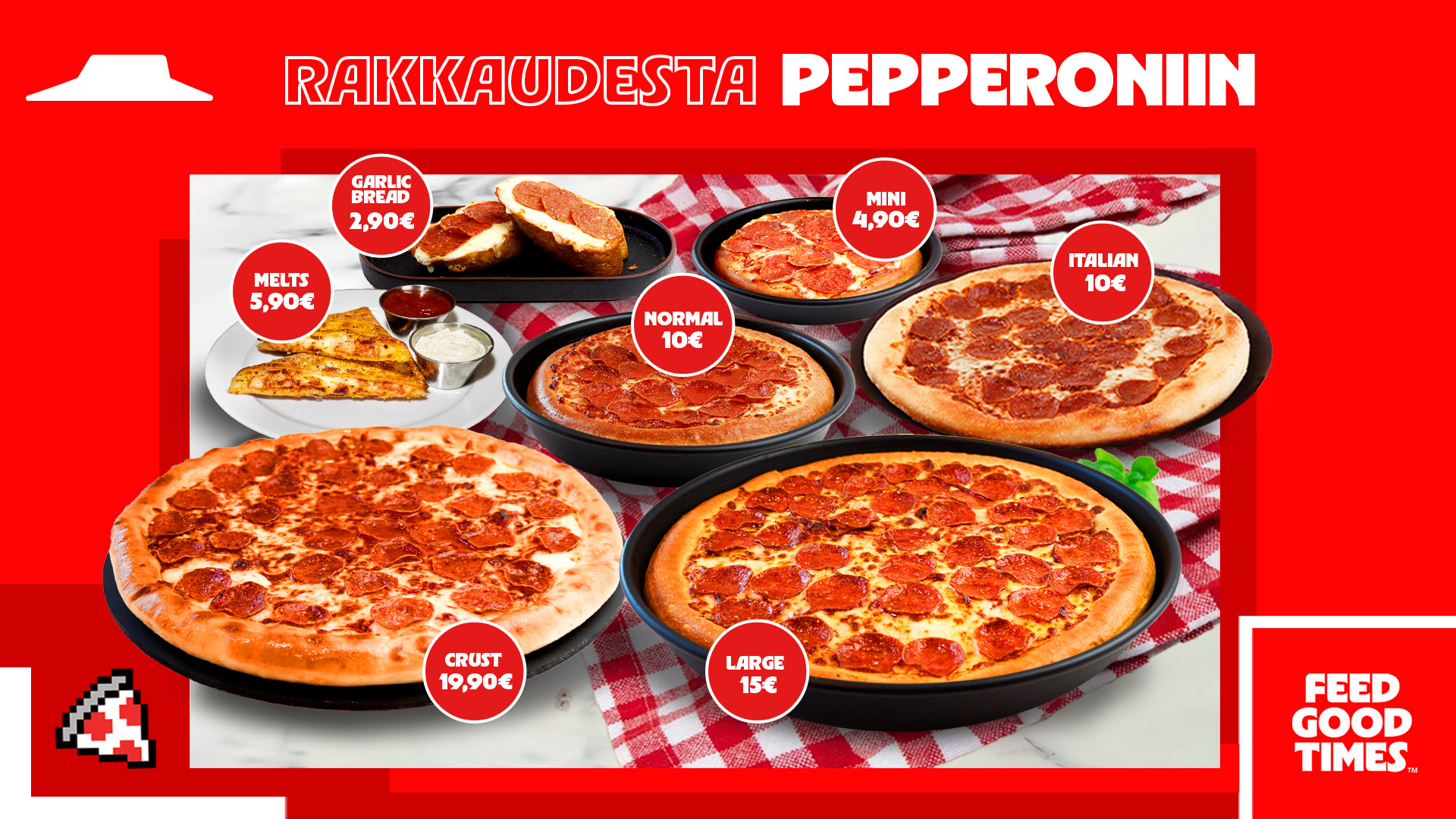 Pepperoni viikot Pizza Hut ravintoloissa 6.10.- 26.10.2025 ajan. Tervetuloa ravintolaan tai tilaamaan verkkokaupastamme!
